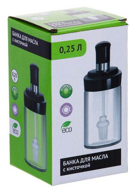 Банка для масла с кисточкой объемом 0,25 л предназначена для хранения масла. Изготовлена из стекла. Не содержит вредных соединений, поэтому безопасна для здоровья. Благодаря эргономичной форме удобна в использовании. Банка имеет кисть-дозатор, за счет чего отличается практичностью. Размер 14,5х6,5 см.