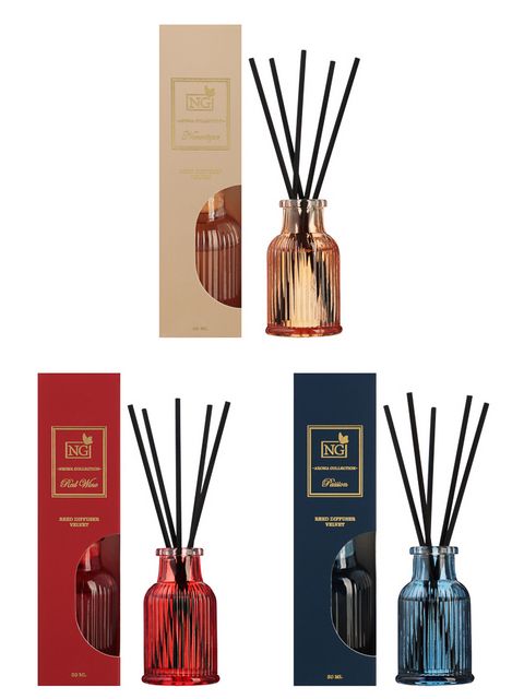 В ассортименте представлены три утонченных аромата: чувственный Red Wine, гипнотический Narcotique, а также темпераментный Passion. Формула с высокой концентрацией натуральных эфирных масел (более 30%) обеспечивает насыщенное и стойкое благоухание, которое мягко раскрывается в помещении благодаря оптимальному содержанию отдушки (5-15%).