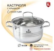 Rashel Берта Кастрюля 1,9л из нержавеющей стали, крышка диаметром 16см из стекла с отверстием для паровыпуска, индукционное дно.