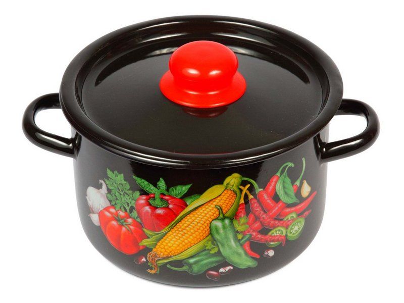 Читать все статьиКастрюля 2,9л Кукуруза, эмалированная, черная с рисунком. Россия