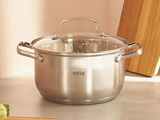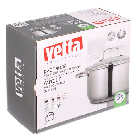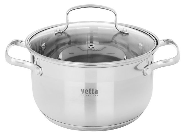 VETTA Берн Кастрюля 3,5л из нержавеющей стали, 20x12cм, стеклянная крышка, индукционное дно.