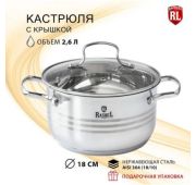 Rashel Виктория Кастрюля 3,7л из нержавеющей стали, крышка диаметром 20см из стекла с отверстием для паровыпуска, индукционное дно.