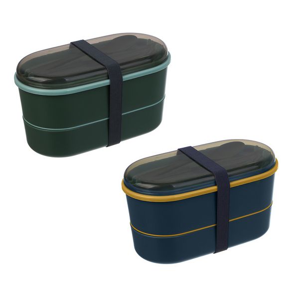 Комплект включает: два контейнера: один с разделителем (для разных продуктов), второй — большой, универсальный; прозрачную крышку с герметичным замком — надёжно сохраняет свежесть и предотвращает проливание; пластиковую посуду (ложка, вилка) — компактно хранится в отсеке крышки. Ремень для фиксации удерживает бокс в собранном виде, не даёт раскрыться в сумке. Компактный размер, лёгкий вес и эргономичная форма делают этот ланч-бокс идеальным спутником на работу, в школу, на природу или в путешествие.