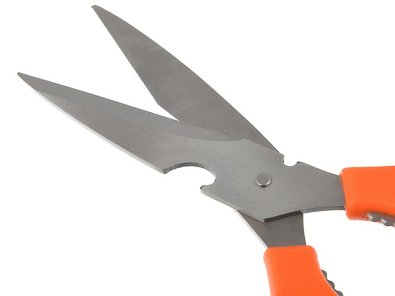 Универсальные кухонные ножницы всегда необходимы для разделки готовой курицы, вскрытия упаковок, чистки рыбы и др. Также ножницы имеют функцию раскалывания орехов и открывалки бутылок. Ножницы кухонные сделаны из высококачественного металла.