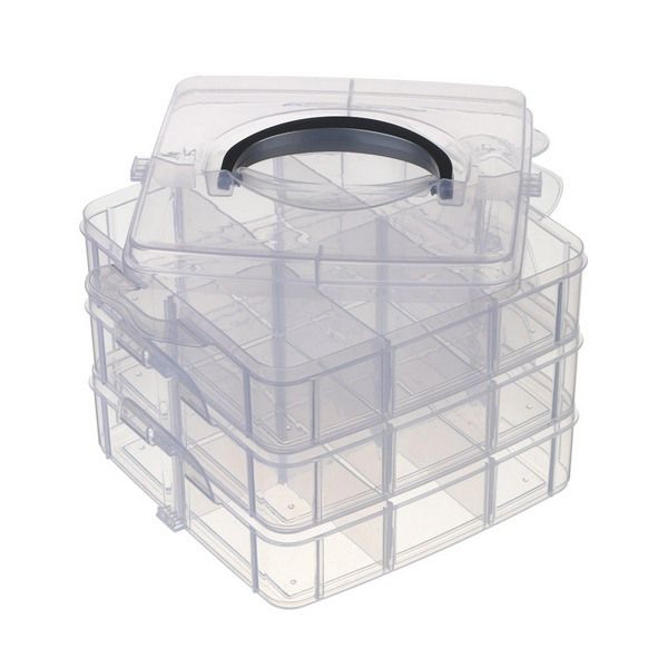 Благодаря продуманной конструкции с 18 прозрачными ячейками и компактным размерам 15х15х12,5 см, этот стильный органайзер идеально впишется в любой интерьер, будь то рабочий стол или полка в шкафу. Прозрачный пластик позволяет мгновенно видеть содержимое каждой ячейки, а квадратная форма обеспечивает оптимальное использование пространства. Удобная ручка делает переноску органайзера максимально комфортной, а надёжная фиксация всех уровней гарантирует стабильность конструкции даже при полной загрузке.