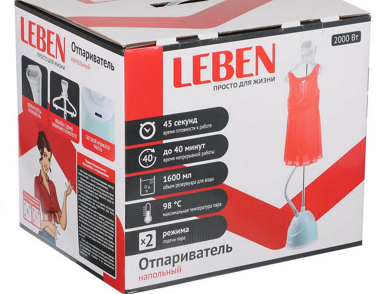 Читать все статьиОтпариватель напольный 2000 Вт, резервуар 1600мл LEBEN