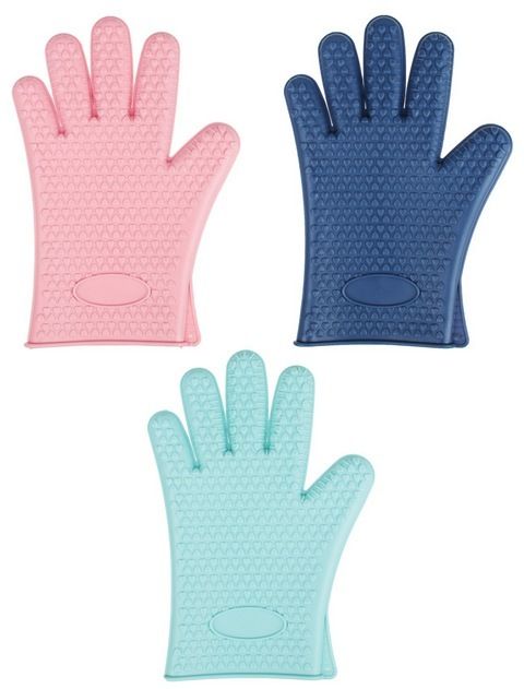Прихватка в форме перчатки из силикона с рифленой поверхностью, препятствующей скольжению.