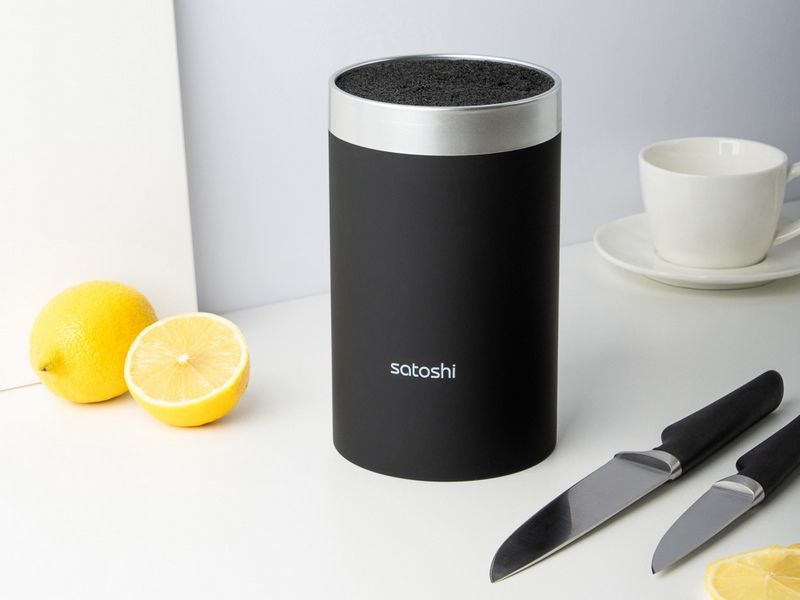 Подставка для ножей SATOSHI Меко диаметром 11см и высотой 18 см – это компактный аксессуар для кухни, предназначенный для хранения ножей. Обеспечивает быстрый доступ к ножам и их отличную фиксацию внутри подставки. Подходит для ножей разной длины. Полипропиленовые разделители не царапают клинок, а лезвия не теряют заточку. Устойчивое основание исключает случайное опрокидывание.