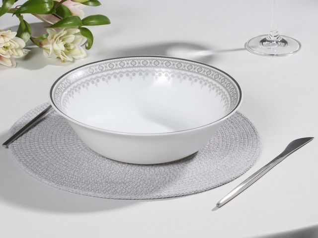 Millimi Минта Салатник 23см, 1200мл, опаловое стекло. Опаловое стекло (ударопрочность), не боится царапин от вилок, ножей, пригодно для микроволновых печей и мытья в посудомоечных машинах, жаропрочность до 125˚C.