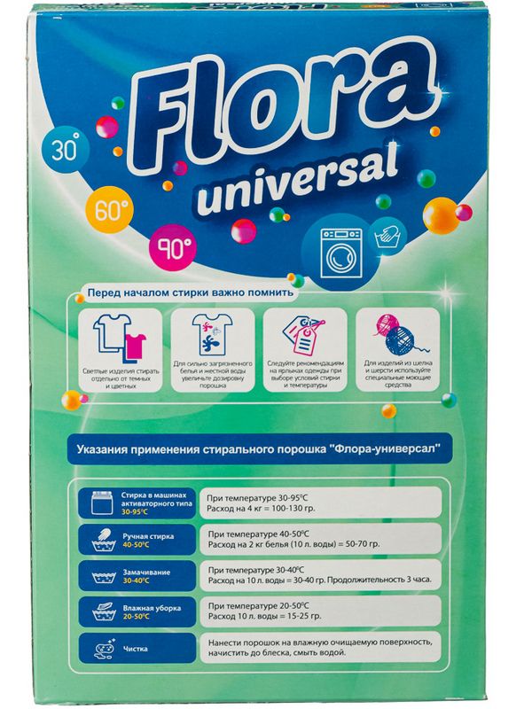 Читать все статьиСтиральный порошок ФЛОРА универсальный, пачка 350гр
